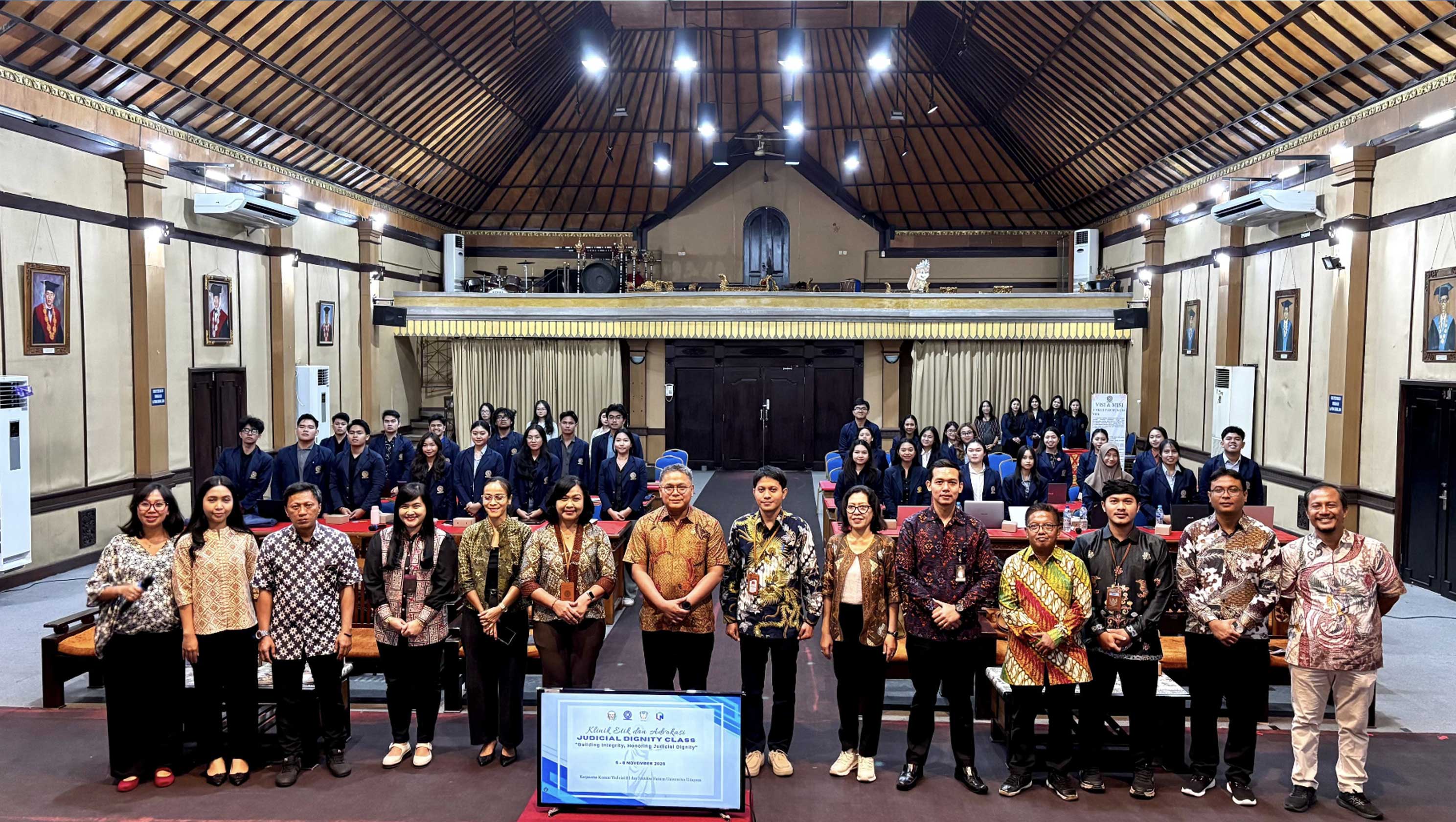 Denpasar (Komisi Yudisial) - Komisi Yudisial (KY) bekerja sama dengan Fakultas Hukum Universitas Udayana (FH Unud) menggelar Klinik Etik Judicial Dignity Class 2025 "Young Minds for Judicial Dignity", Rabu (5/11/2025) di Gedung FH Unud, Denpasar. Kegiatan ini sebagai upaya untuk menyebarluaskan pemahaman tentang pentingnya menjaga kehormatan dan keluhuran martabat hakim.